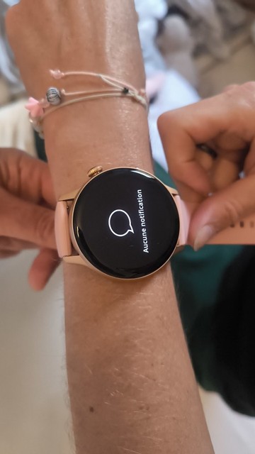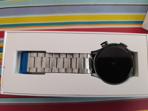 Arrivée rapidement, la montre semble de bonne qualité à voir dans le temps. Il y a un deuxième bracelet, le câble de charge et tune protection d’écran qui elle n’est vraiment pas bien, tout le tour ça prend pas la forme donc on ne ‘la pas laissé. Pour les femme avec petit poignet, la montre va faire grosse, Je suis pas sûr que la fréquence cardiaque soit tout le temps juste, à voir avec plusieurs essais. Dans l’ ensemble belle montre, agréable pas mal de fonctions. Pour le prix ça vaut le coup 👍