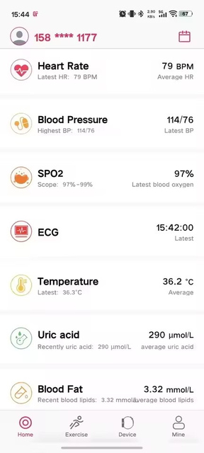 He also has independent and accurate blood oxygen, body temperature, ECG, breathing rate, blood pressure, heart rate, blood oxygen, uric acid,