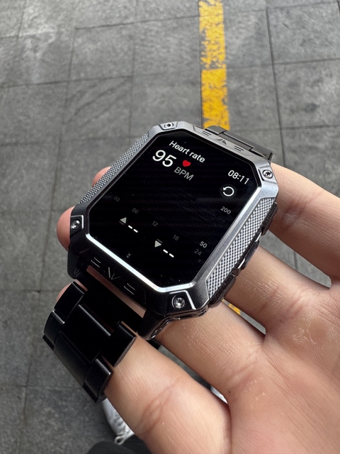 First of all, the design: the sturdy industrial-style frame (with visible screws and textured sides) is incredibly durable. The screen is clear (easy to read in bright light), it is comfortable to wear on your wrist during long-term gym exercise, and the battery has performed well so far.