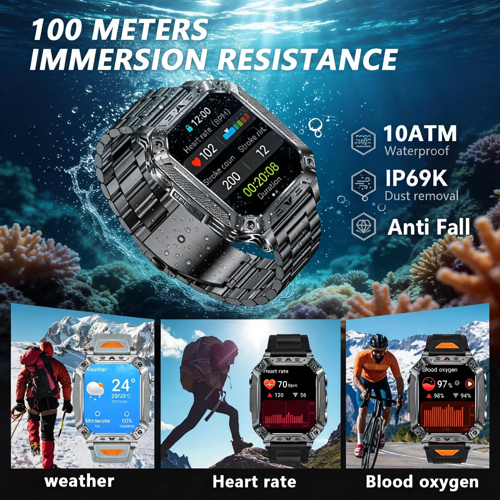 | Function 4 | 10ATM waterproof+IP69K sand proof |