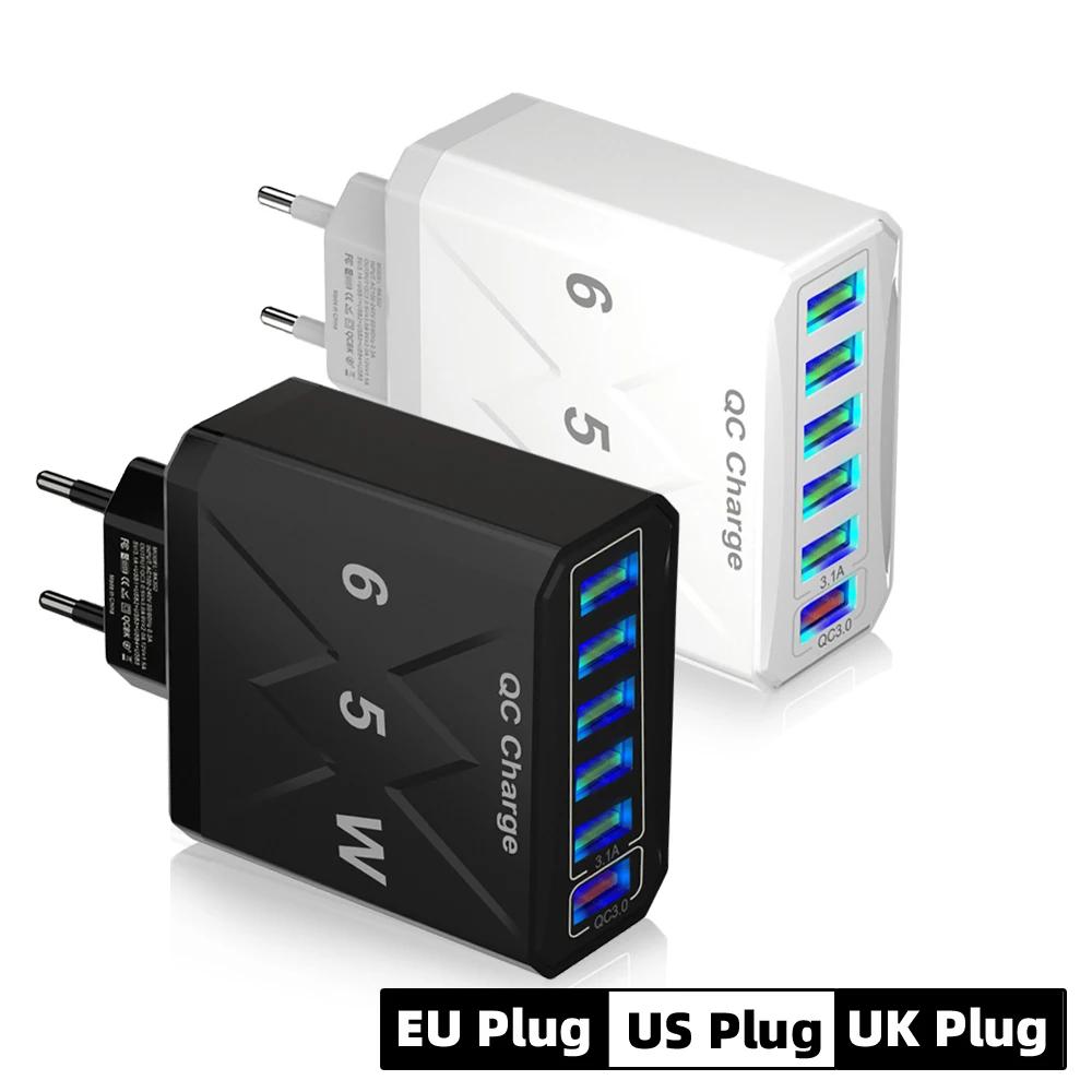 65W 6 Ports USB Fast Charger QC3.0