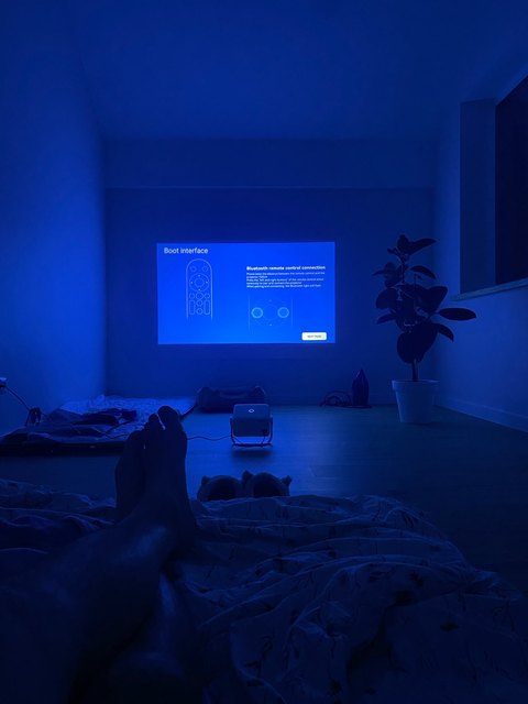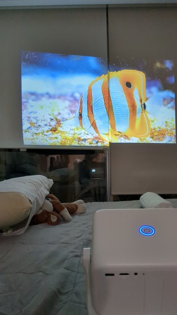Отличный проектор, очень большая проекция на 3х метрах. Он отлично подходит для не больших помещений. Я доволен покупкой! Теперь не ходу в кино! По характеристикам: 1. не высокая яркость, поэтому нужно сиотреть в полной темноте, тогда он раскрывается на все 100% 2. быстро и стабильно подключается к блютуз колонке 3. быстрый wifi, потоковое видео в FHD тянет без проблем 4. своя прошивка позволяет ставить сторонние приложения с флешки и маркетплейса 5. Автофркус и трапеция 6. блютуз пульт 7. поддерживает проекцию с телефона (в моём случае с IOS) Продовец отзывчивый, решает все вопросы !