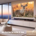 Great projector, auto keystone is super nice. have it set up as a 70″ and it’s very good quality in dark and semi dark.
