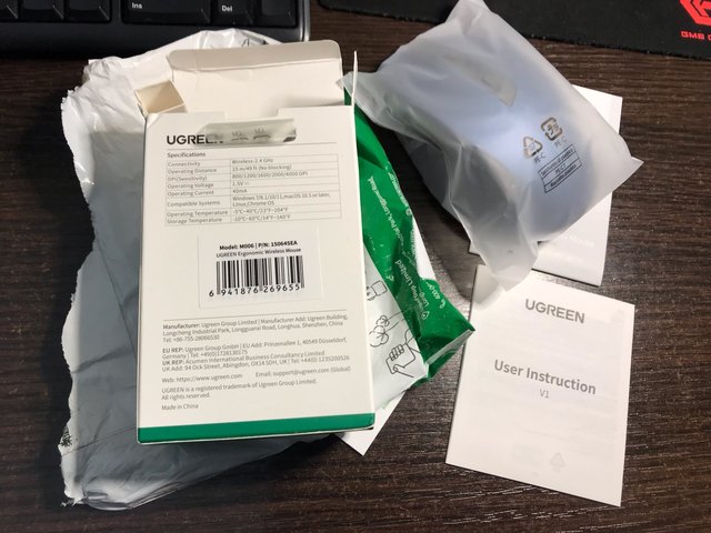 Прийшло швидко. Коробка з мишкою була в стандартному сірому пакеті. Миша супер. Приємна на дотик. Приємний кольор – синій. Гарно тримається в руці. Звук тихий. Може кажется трохи легкою. Хотілося щоб була тяжче. В використанні 3 неділі, все гаразд . Підключилася перший раз до ubuntu швидко. Потім пропала і не зміг підключити . Почитав інструкцію що йшла з мишкою , зробив як написали і все запрацювало. Далі пробки не має. Я дуже задоволений . Ugreen це якість.
