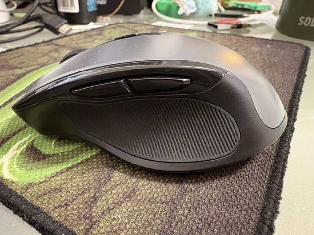 Excelente mouse, muito anatômico, encaixa perfeitamente na mão, é bem rápido e gasta bem pouco a pilha.